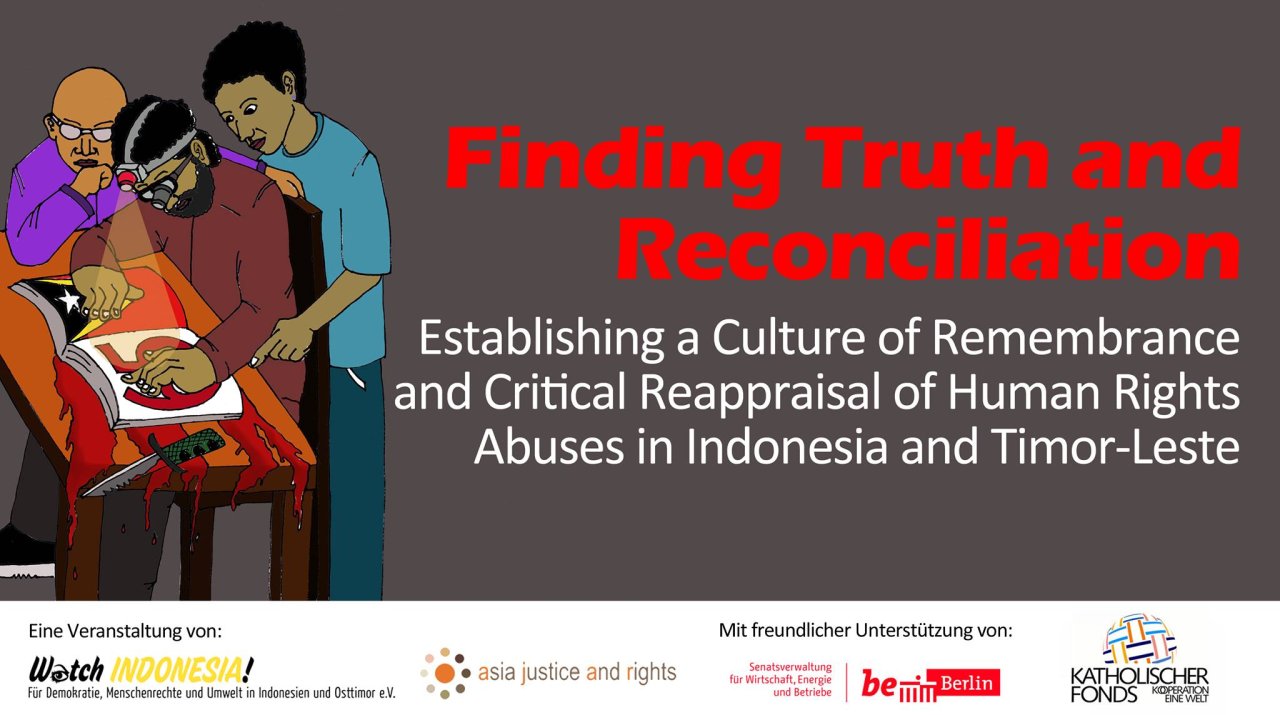 In Indonesien und Timor-Leste (Osttimor) begangene Menschenrechtsverletzungen erfahren kaum Anerkennung durch den indonesischen Staat, geschweige denn eine angemessene Aufarbeitung. So bleibt das Massaker von 1965/66, bei dem mindestens eine halbe Million Menschen ermordet wurde, ungesühnt und von der Geschichtsschreibung ausgeschlossen. Die Aufarbeitung der Menschenrechtsvergehen während der Besetzung Osttimors (1974-1999) verläuft genauso schleppend wie die zu Zeiten der militärischen Auseinandersetzung über die Unabhängigkeit Acehs begangenen. Initiativen, die sich für eine adäquate Erinnerungskultur und Aufarbeitung einsetzen begegnen häufig starken Widerständen, die mitunter bis zur Bedrohung von Leib und Leben reichen.