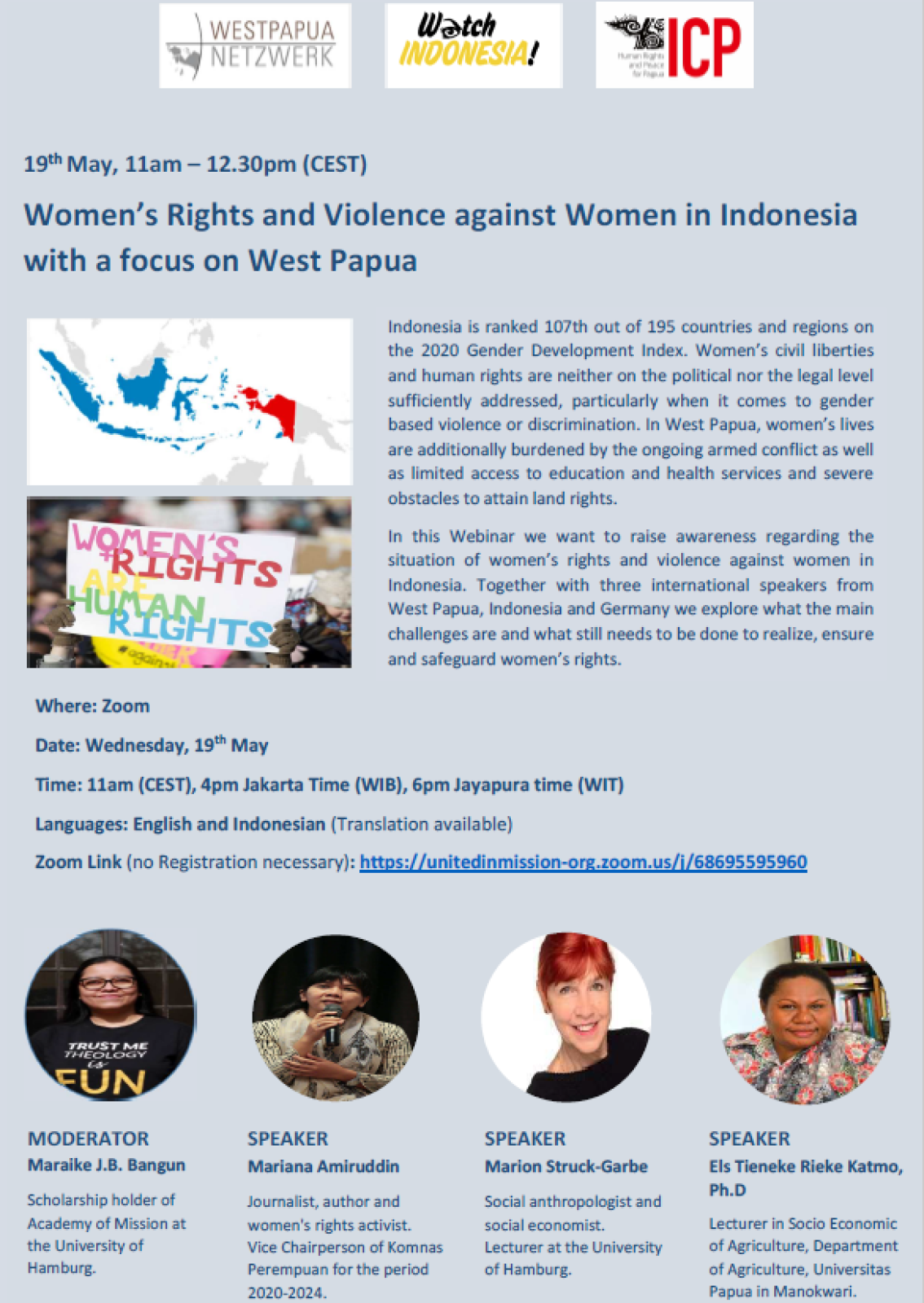 19th May, 11am – 12.30pm (CEST) I 4pm Jakarta Time (WIB), 6pm Jayapura time (WIT)