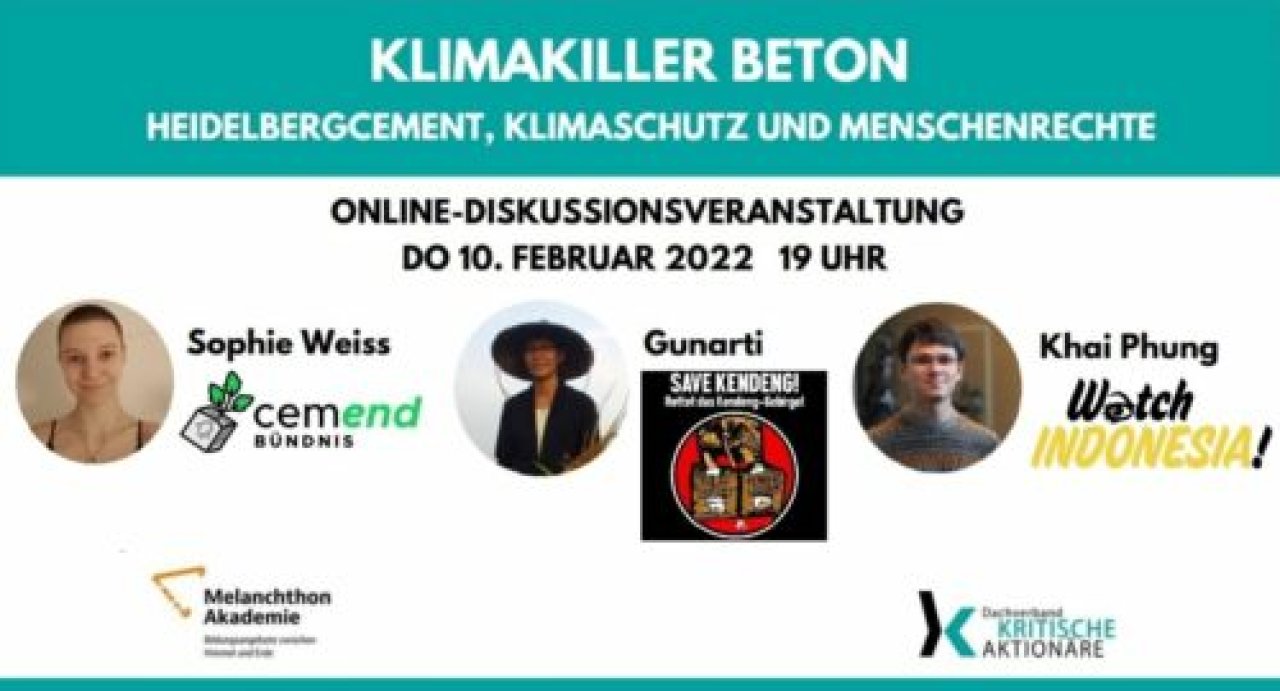 Informationsveranstaltung zum Klimakiller Beton - HeidelbergCement, Klimaschutz und Menschenrechte