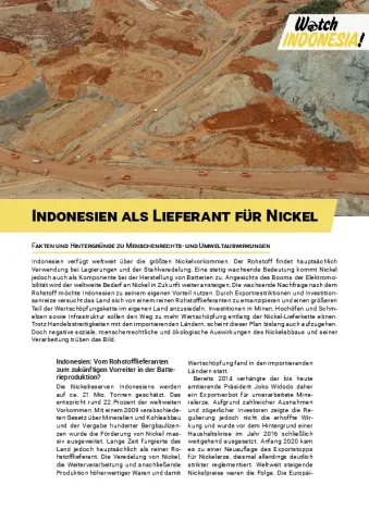 Indonesien als Lieferant für Nickel - Fakten und Hintergründe zu Menschenrechts- und Umweltauswirkungen (Factsheet)