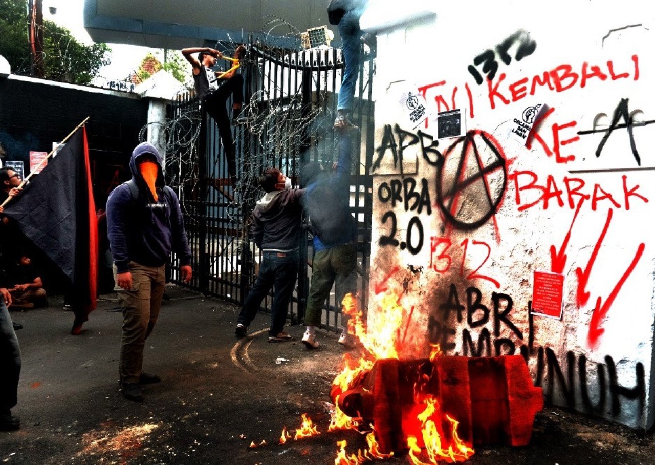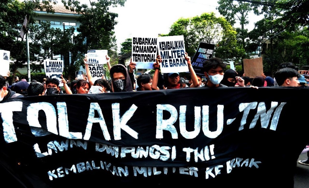 Protests were held in almost 70 cities across Indonesia from March 20 to 27, 2025, with protesters demanding the following: Repeal the TNI Law; Reject dual function; Return the military to the barracks; Disband the territorial command; Prosecute generals who violate human rights, including Prabowo; Withdraw the military from Papua; Abolish the military reserve component and the conscription plan; Stop the use of “buzzers” (cyber police that spread disinformation); Disband military courts; Try military prisoners in civilian courts; Stop military involvement in civilian-public spaces, reject militarization through development, and fight fascism and militarism.